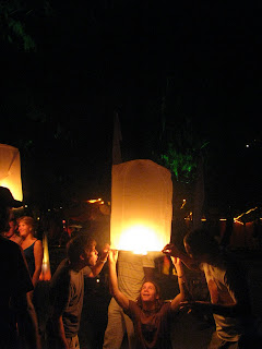 I look out the window and I feel the most perceptive that I have since I have been in Thailand. It always seems that when something is ending, I tend to pay the most attention. The clouds are rolling over rice fields to my left. Sarah is lying on John's lap eating sour skittles to my right. And everything is exactly where it should be, and going exactly where it belongs right now. There are windmills that I haven't seen previously, made of worn brown canvas, and the scraps of wood that used to make up a farm shed, blown over by many years ago's monsoons which tear at the rice fields digging up their crops.